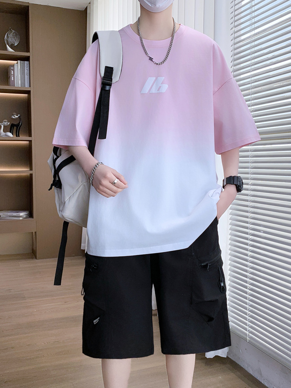 渐变短袖短裤套装男夏季冰丝凉感t恤